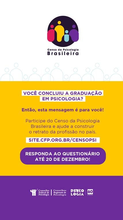 Você é graduado em Psicologia? Então, participe do Censo da Psicologia Brasileira e ajude a construir o retrato da profissão no país.